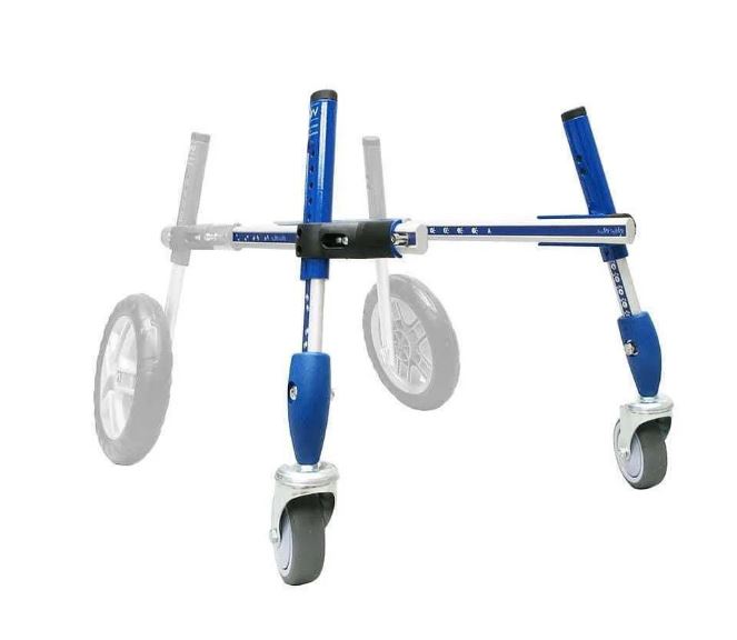 K zadnímu invalidnímu vozíku Walkin‘ Wheels® MINI lze přidat Walkin‘ Wheels Přední nástavec invalidního vozíku Mini a vytvořit tak vozík s plnou oporou a 4 koly pro psy a další malá domácí zvířata o hmotnosti 0,9 až 4,5 kg. Pokud zvířeti zeslábnou přední končetiny a již používá zadní vozík Walkin‘ Wheels, umožňuje Walkin‘ Wheels Přední nástavec invalidního vozíku Mini přeměnit zadní vozík na vozík s plnou podporou, který podporuje všechny čtyři končetiny.