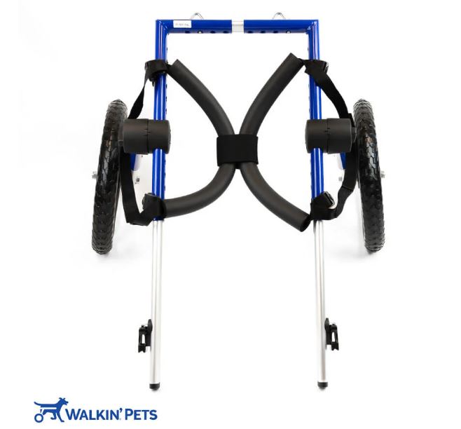 Velký invalidní vozík pro psy Walkin‘ Wheels je zkonstruován tak, aby podporoval psy velkých nebo obřích plemen a pomáhal jim vést aktivní životní styl. Velký vozík pro psy poskytuje vašemu psovi stabilitu a oporu zadní části těla, kterou potřebuje k cvičení, chození na toaletu a užívání si času s rodinou. Ať už se váš velký pes potýká se slabostí zadních nohou způsobenou degenerativní myelopatií, ochrnutím nebo bolestí kloubů, Walkin‘ Wheels ho udrží v pohybu!